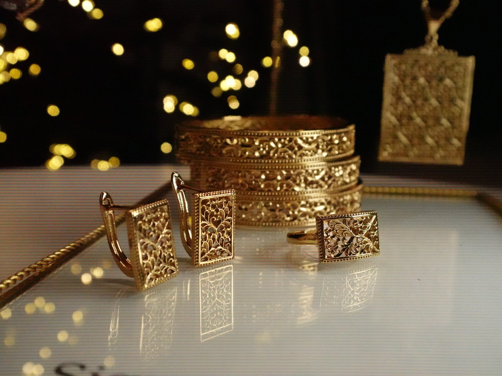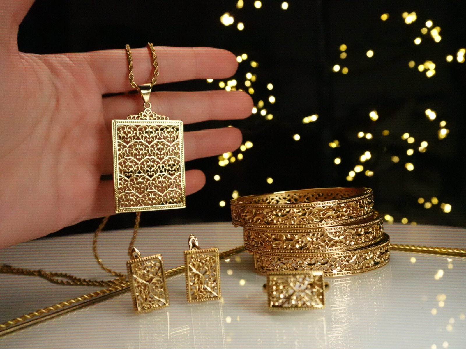Set élégant au design oriental raffiné, travaillé avec des détails finement ajourés inspirés de l’art traditionnel royal.