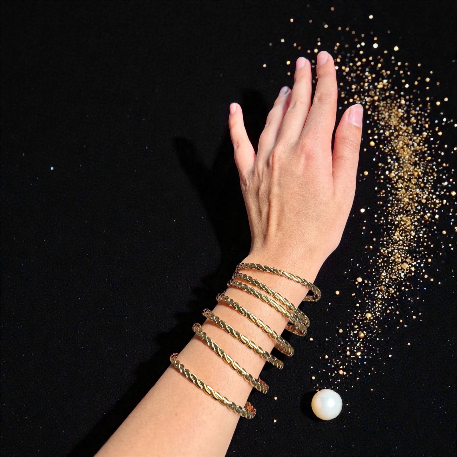 Pack élégant composé de 7 bracelets manchette au design torsadé (effet corde tressée).